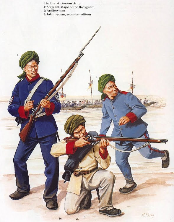 A tajping felkelés vonzotta a külföldi kalandorokat is. Bár a tajpingok gyümölcsöző kapcsolatokat ápoltak a sanghaji amerikai fegyverkereskedőkkel, és seregükben lehetett nyugati zsoldosokat is találni, a külföldiek döntő többsége viszont sanghaji lakosként mégis a város védelmében vett részt és felajánlotta szolgálatait a nyugati fegyverek iránt egyre inkább érdeklődő Csing-udvarnak. Az egyik ilyen kalandor, az amerikai Frederick Townsend Ward először sanghaji nyugati önkéntesekből toborzott védelmi erőt, majd 1861-ben megszerezte a pekingi kormány támogatását is egy nyugati kiképzésű és felszereltségű, európai tisztek által vezetett, de kínaiakból álló zsoldoshadsereg, az ún. Örökké Győzedelmes Hadsereg (EVA) megalakításához. Ward 5000 főre rúgó, nyugati fegyverekkel, elsősorban modern tüzérséggel és egyenruhával, valamint egy, 12 lapátkerekes gőzösből és többtucatnyi dzsunkából álló folyami flottillával felszerelt rohamcsapata az év végére kitüntette magát a harcokban. Rendkívül mozgékony, jól képzett és felszerelt egységeik komoly veszteséget okoztak a tajpingoknak.